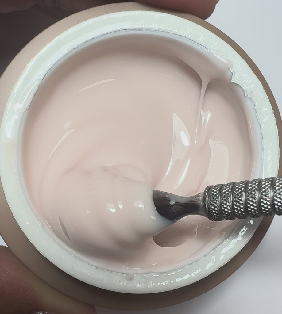- Déposer une boule d'acrygel liquide sur la surface au niveau de l'apex, ne pas catalyser