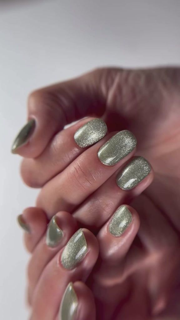 - Applique le vernis semi-permanent et avec le MAGNET STICK active l'effet cat eyes et catalyse en lampe.