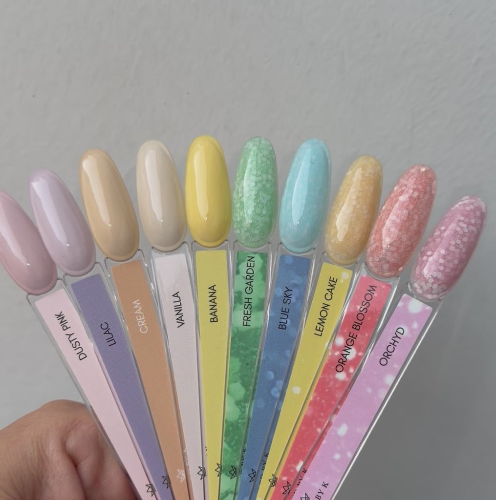 ORANGE BLOSSOM • DUSTY PINK • LILAC • LEMON CAKE • ORCHYD • CREAM • BABY BLUE • FRESH GARDEN • BANANA • VANILLA